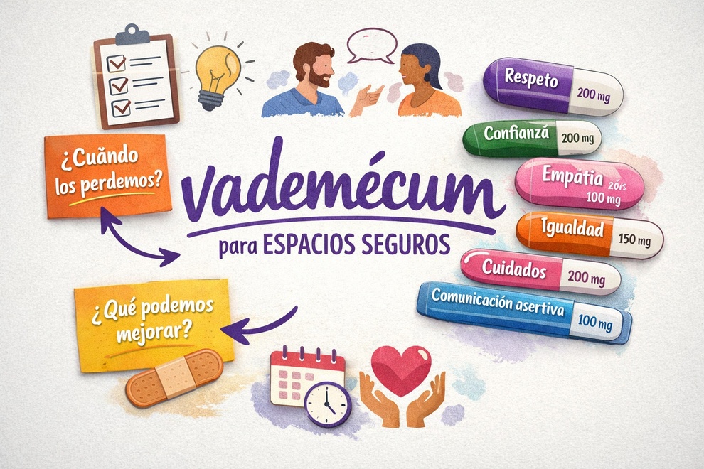 Vademecumak modu oso grafikoan jasotzen ditu espazio horiek sortzeko beharrezkoak diren “osagaiak”: errespetua, zaintza, konfidantza, enpatia, berdintasuna, komunikazio asertiboa, aitortza.